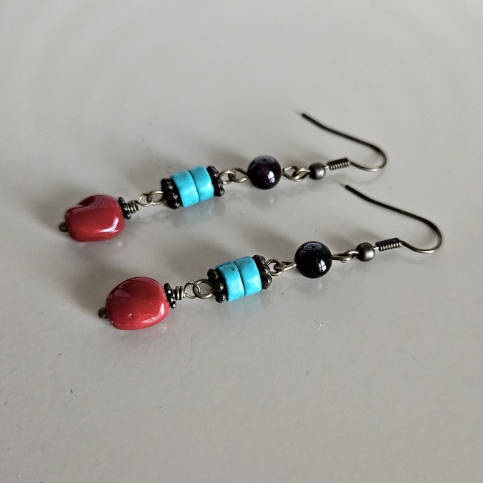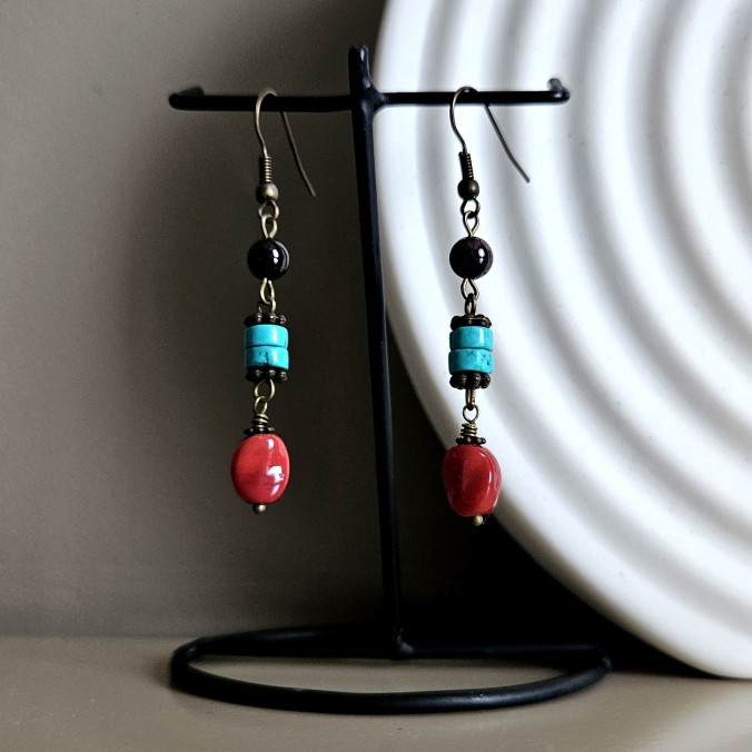 Серьги – гранат, бирюза, яшма красная.