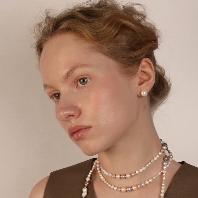 Серьги – пусеты жемчуг Майорика белый. Покрытие металла родий напыление.